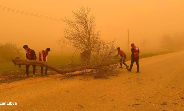 تعمل فرق الهلال الأحمر الليبي بشكل مكثف على إخماد الكوارث والآثار الناتجة عن الظروف المناخية الصعبة، حيث تم تنفيذ عمليات إزالة الأشجار والعوائق من الطرق، بالتعاون مع الجهات المعنية، لضمان استمرارية حركة المواطنين وتسهيل عمليات الإخلاء والطوارئ. إضافة إلى ذلك، تركز الفرق على تقديم الإسعافات الأولية للمحتاجين والمتضررين، وتقليل المخاطر الصحية الناتجة عن الأدخنة أو الإصابات المفاجئة نتيجة الرياح القوية. كما تتواصل جهود توزيع وسائل الحماية الشخصية مثل الكمامات للحد من آثار الغبار، وحماية الصحة العامة.