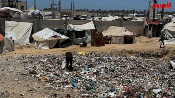 وفيما يتعلق بالنازحين، أشار إلى أن «منطقة المواصي غرب خان يونس، بمساحة 19 كيلومترًا مربعًا، تضم نحو 900 ألف نازح، رغم أنها غير مؤهلة لاستقبال هذا العدد لافتقارها إلى البنية التحتية والخدمات الأساسية، ما فاقم التلوث نتيجة إلقاء المخلفات والصرف الصحي على الشاطئ، مسببةً انتشار أمراض جلدية وأوبئة».