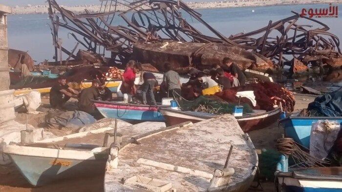 نائب رئيس جمعية الصيادين، أمين الصندوق، غانم يوسف صلاح، أشار لـ«الأسبوع» إلى أنه «في 12 أكتوبر 2023، تم تدمير جميع مراسي قطاع غزة كليًا: مدينة غزة، النصيرات، دير البلح، خان يونس، ورفح. أحرقوا جميع المراكب. النزوح الكبير جعل مئات الآلاف ينصبون خيامهم على الشاطئ من الزوايدة إلى المواصي».