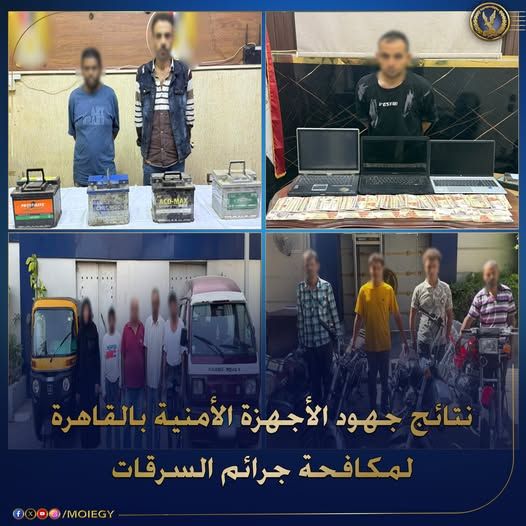 فى إطار مكافحة الجريمة وضبط وملاحقة العناصر الإجرامية مرتكبي جرائم السرقات، فقد تمكنت الأجهزة الأمنية بمديرية أمن القاهرة من تحقيق النتائج الإيجابية التالية:
