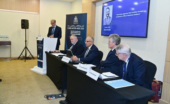 وأضاف أن عملية إعادة بناء قطاع المياه في فلسطين يجب أن تستند إلى ثلاث ركائز أساسية تتمثل فى الاستجابة الإنسانية العاجلة بإعادة الوصول إلى المياه الآمنة والصرف الصحي والنظافة كأولوية لإنقاذ الأرواح، والاستثمار الإستراتيجي بإعادة بناء منظومات مرنة مناخيًا ولامركزية، والتعاون الإقليمي بدمج فلسطين فى إطار إقليمي مشترك لأمن المياه.