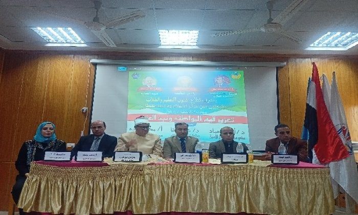 تواصل نيوز - عقد مجمع إعلام الغربية بالتعاون مع كلية التربية بجامعة طنطا ندوة بعنوان "تعزيز قيم المواطنة ونبذ العنف" بمقر كلية التربية، في إطار الحملة الإعلامية التي تنظمها الهيئة العامة للاستعلامات برئاسة الدكتور ضياء رشوان، وقطاع الإعلام الداخلي برئاسة الدكتور أحمد يحيى، تحت شعار "مصر لكل ولادها".