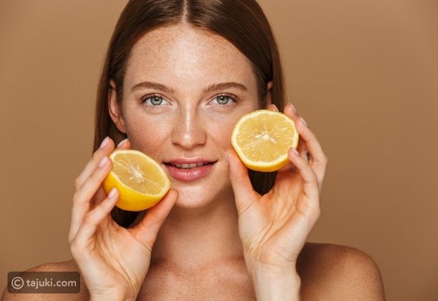 يحتوي عصير الليمون بشكل طبيعي على فيتامين C وهو أحد مضادات الأكسدة التي قد تساعد في تقليل تلف الجلد والشيخوخة المبكرة. لارتفاع مستويات الأس الهيدروجيني pH يمكن أن يقلل الليمون الزيت على الجلد ويقلل الالتهاب. الليمون قد يكون له خصائص مضادة للفطريات بما في ذلك القدرة على قتل سلالات فطر المبيضات على الجلد. يحتوي الليمون على أحماض لها القدرة على تفتيح البشرة بشكل طبيعي بما في ذلك البقع العمرية وندبات حب الشباب.يحتوي الليمون على مستوى منخفض جداً من الأس الهيدروجيني pH مما يجعله شديد الحمضية. ويمكن أن يتسبب تطبيقه على البشرة في العديد من الآثار الجانبية منها:
