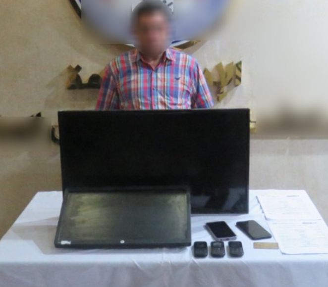 عقب تقنين الإجراءات أمكن ضبطه ، وبحوزته (بطاقة دفع إلكترونى – 3 شاشة تليفزيون "من متحصلات نشاطه الإجرامى" - 5 هواتف محمولة "بفحصهم فنياً تبين إحتوائهم على دلائل تؤكد نشاطه الإجرامى")، وبمواجهته أقر بنشاطه الإجرامى على النحو المشار إليه.