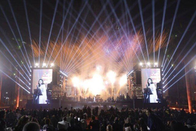 واختتمت الحفل الفنانة آمال ماهر، التي بمجرد صعودها إلى مسرح الحفل، قام الجمهور بالترحيب بها، مرددين هتاف «صوت مصر»، في أجواء من الفرح والبهجة.