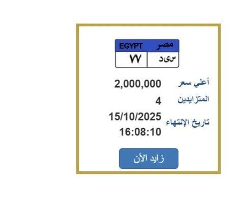 سعرها وصل 2 مليون جنيه.. مزايدة نارية على لوحة سيارة مميزة - تواصل نيوز, اليوم الأربعاء 15 أكتوبر 2025 10:21 صباحاً