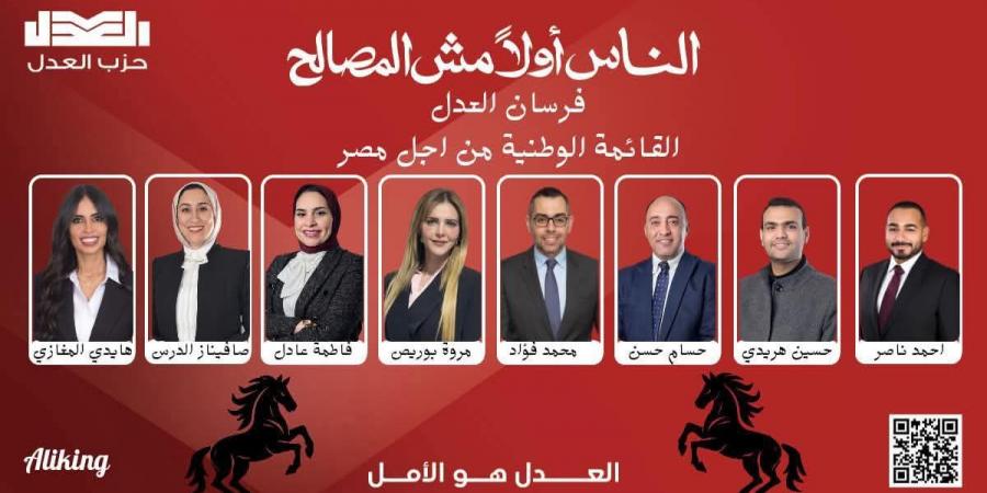 من بينهم محمد فؤاد وحسين هريدي.. أسماء مرشحي حزب العدل بالقائمة الوطنية - تواصل نيوز, اليوم الأربعاء 15 أكتوبر 2025 01:59 مساءً