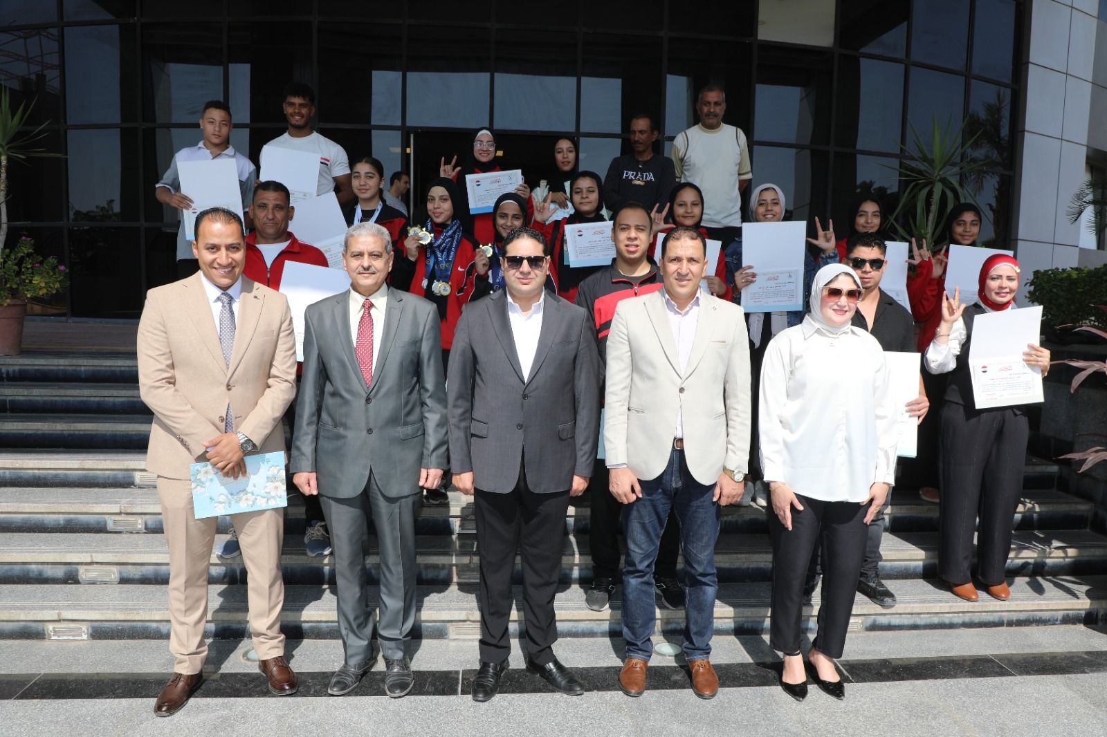 ضمت قائمة المُكرمين: اللاعبة شادية أحمد جمال _لاعبة منتخب مصر للسلاح ونادي المُعلمين ببني سويف،لفوزها بالميدالية الذهبية (فرق)، والميدالية البرونزية (فردي) ، واللاعب :فهد محمد كمال _ لاعب منتخب مصر للملاكمة _ بطل المشروع القومي للموهبة والبطل الأوليمبي ، لفوزه بالميدالية البرونزية (ميزان 63 ك فرق)، في منافسات دورة الألعاب الأفريقية للمدارس في نسختها الأولى التي استضافتها الجزائر في الفترة من 25 يوليو 2025 إلى 5 أغسطس 2025،