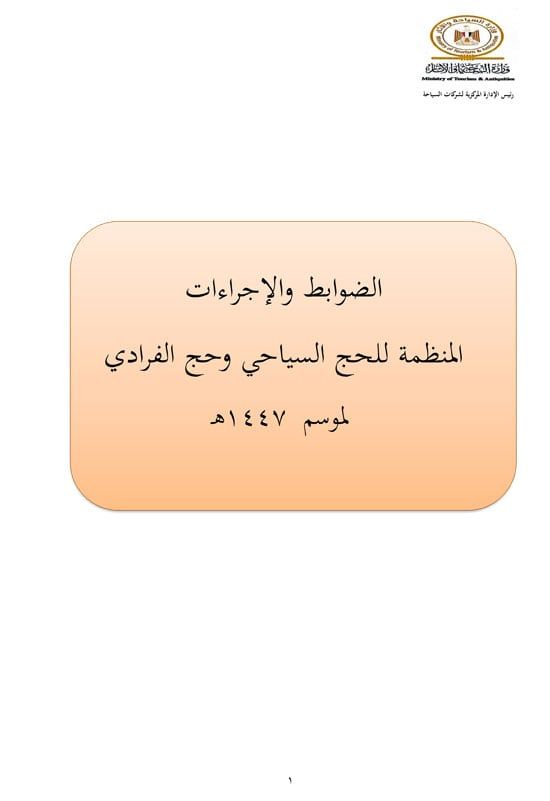 صحيفة تواصل - تنشر "صوت الأمة"، النص الكامل للضوابط والقواعد المُنظمة للحج السياحي لعام 1447هـ، وفقاً لأحكام قانون 84 لسنة 2022 المنظم للحج، وقانون شركات السياحة رقم 38 لسنة 1977، وذلك في إطار الحرص على تحقيق التميز المستهدف والنهوض بمنظومة الحج السياحي وتطويره.