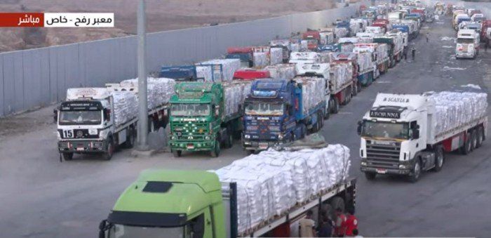 شرعت قافلة شاحنات المساعدات الإنسانية الـ 104 في الدخول إلى الفلسطينيين بقطاع غزة، اليوم /الاثنين/ عبر البوابة الفرعية لميناء رفح البري بمحافظة شمال سيناء باتجاه معبر كرم أبوسالم، تمهيدا لإدخالها إلى القطاع.