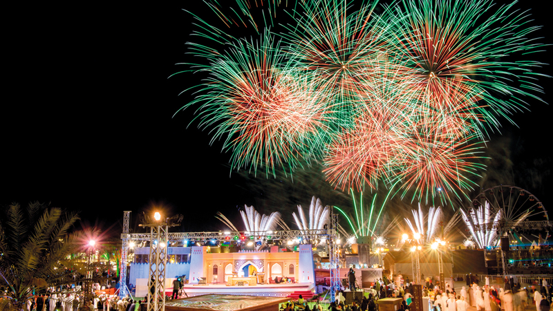وتشهد ساحات المهرجان عروضاً تراثية إماراتية متنوعة تشمل العيالة والرزفة والندبة، بمشاركة مئات المؤدين، إلى جانب عروض لفرق عالمية. كما تقدم أجنحة الدول المشاركة عروضاً كرنفالية وموسيقية، وبرامج مخصصة للأطفال على مسرح الطفل وفي مدينة الألعاب الترفيهية التي افتُتحت في ديسمبر 2025، لتشكّل إضافة نوعية لاحتفالات رأس السنة.