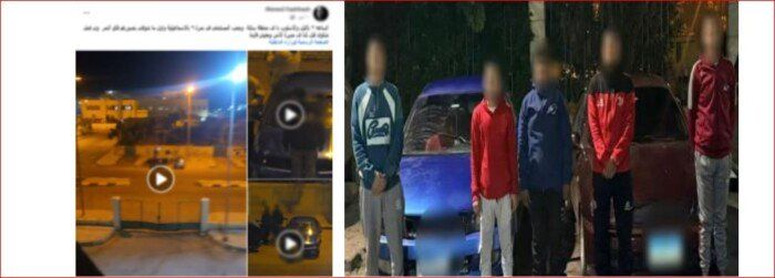 بالفحص تبين عدم ورود ثمة بلاغات في هذا الشأن، وأمكن تحديد وضبط الأشخاص الظاهرين بمقطع الفيديو 5 أشخاص، مقيمين بنطاق محافظة الإسماعيلية، وبحوزتهم 2 سيارة المستخدمتان في الواقعة.