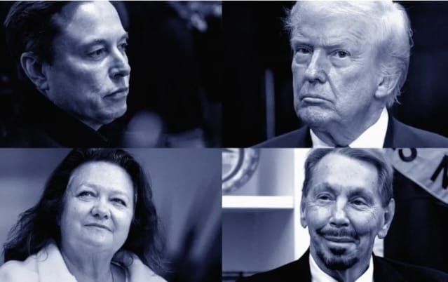 واستفادت المليارديرة الأسترالية جينا راينهارت من الطلب العالمي على المعادن النادرة، لترتفع ثروتها إلى 37.7 مليار دولار. كذلك زادت ثروة دونالد ترامب وعائلته إلى 6.8 مليار دولار، مع توسعهم في صفقات متعددة، لا سيما في مجال العملات المشفرة والإعلام.
