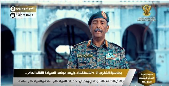 وأضاف البرهان خلال كلمته بمناسبة الذكرى السبعين للاستقلال، أن الشعب السوداني مصمم على تحقيق النصر، والقوات المسلحة تقف مع الشعب لتحقيق الحرية والسلام والعدالة.