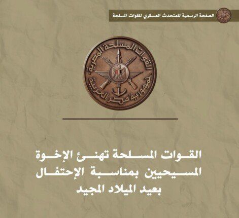 القوات المسلحة تهنئ الإخوة المسيحيين بمناسبة الاحتفال بعيد الميلاد المجيد - تواصل نيوز, اليوم الاثنين 5 يناير 2026 05:22 مساءً