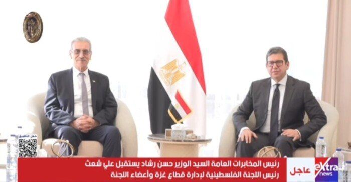 استقبل اللواء حسن رشاد، رئيس جهاز المخابرات العامة، علي شعث، رئيس اللجنة الفلسطينية لإدارة قطاع غزة وأعضاء اللجنة.