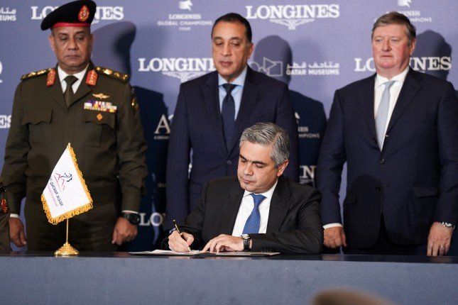 تم تنظيم مراسم توقيع بروتوكول التعاون بين الأكاديمية العسكرية المصرية والاتحاد المصري للفروسية وشركة «جلوبال شامبيونز تور» من خلال الشركة المتحدة للرياضة، في العاصمة الجديدة، وذلك بهدف إقامة بطولة الفروسية تحت سفح أهرامات الجيزة لمدة خمس سنوات.