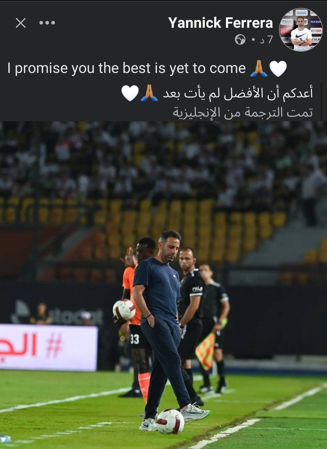 الرسالة حملت وعد صريح من فيريرا للجماهير بأن القادم سيكون أفضل، مؤكدًا أن الأفضل لم يأتي بعد.