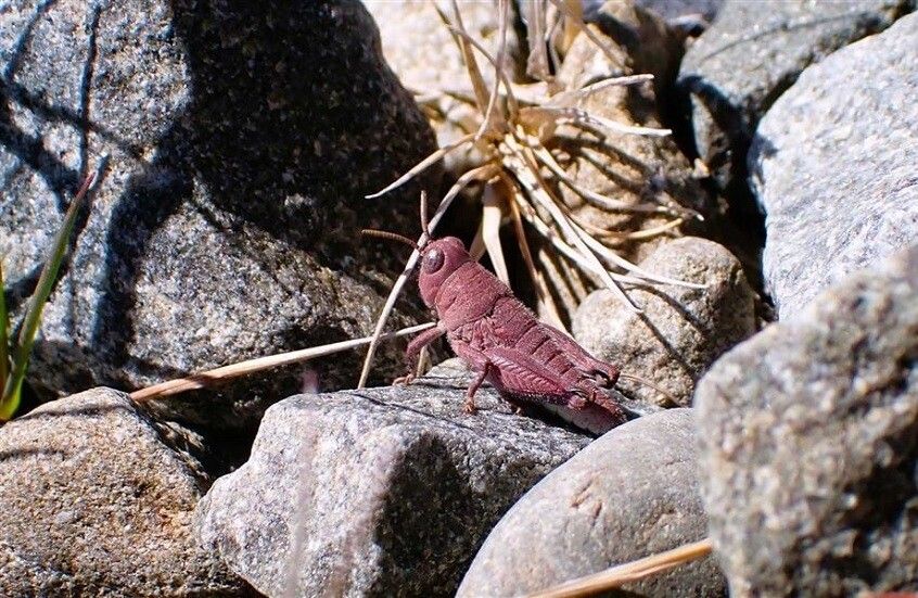 عثر مفتشو إدارة الحفاظ على البيئة أثناء الدراسات السنوية في منطقة بحيرة تيكابو بنيوزيلندا على جندب غير عادي من نوع Sigaus robustus يتميز بلون وردي نادر.