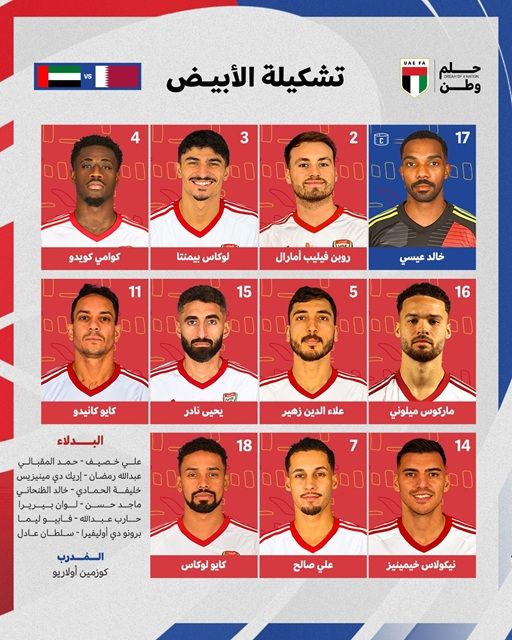 تواصل نيوز - تنطلق الساعة 9:15 من مساء اليوم الثلاثاء المباراة الحاسمة على التأهل لنهائيات كأس العالم 2026 بين المنتخب الإماراتي ونظيره القطري على استاد جاسم بن حمد في الدوحة، ضمن الملحق الآسيوي.